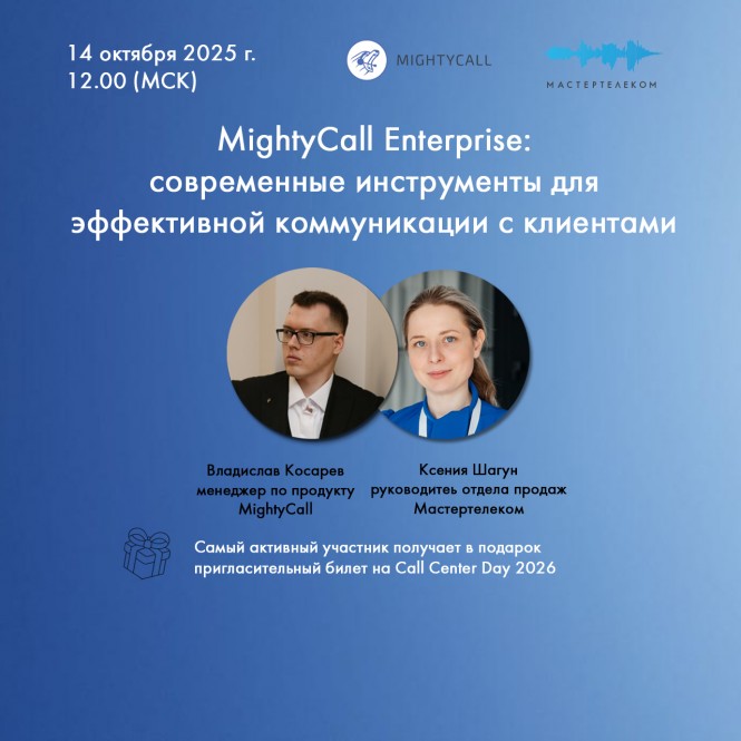 14 октября 2025 г. совместно с партнерами из компании MightyCall мы проведем бесплатный вебинар "MightyCall Enterprise: современные инструменты для эффективной коммуникации с клиентами"